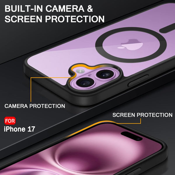 VAKIBO Megnatic Magsafe Black Coloured Soft with Hard back Back Cover Case With Camera Protection Ring Suitable for iPhone 17