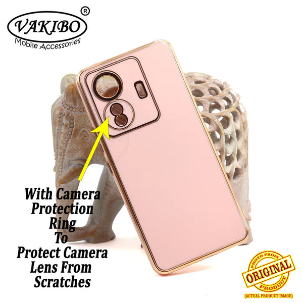 VAKIBO Golden Chrome Border Peach Coloured Soft TPU Back Cover Case With Camera Protection Suitable for Iqoo Z6 Pro