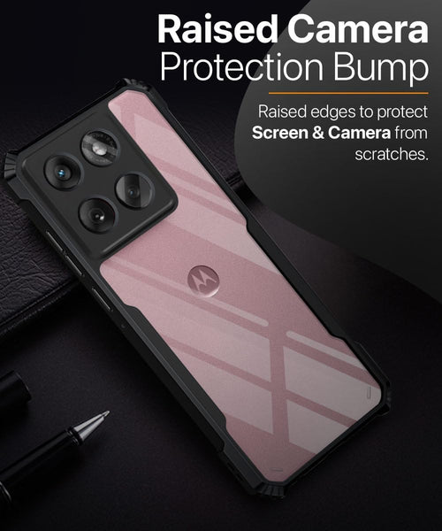 VAKIBO Best Selling Black and Transparent Coloured Made With Soft TPU and Acrylic Back Cover Case With 4 Corner and Camera Protection Suitable for Moto Edge 60 Fusion