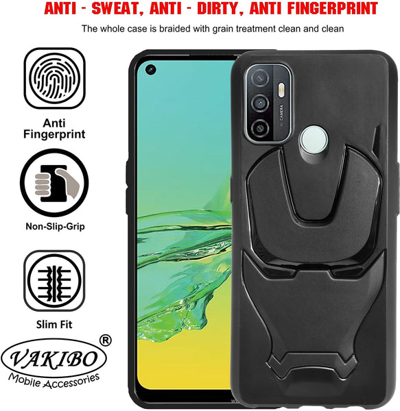 VAKIBO Iron Man 3D Mask Design Black Coloured Soft TPU Back Cover Case With Camera Protection Ring Suitable for Oppo A33