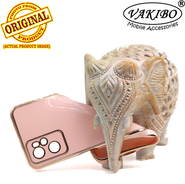 VAKIBO Golden Chrome Border Peach Coloured Soft TPU Back Cover Case With Camera Protection Suitable for Oppo A96