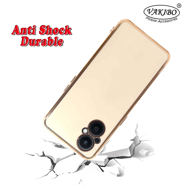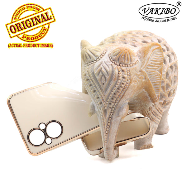 VAKIBO Golden Chrome Border White Coloured Soft TPU Back Cover Case With Camera Protection Suitable for Oppo F21s Pro