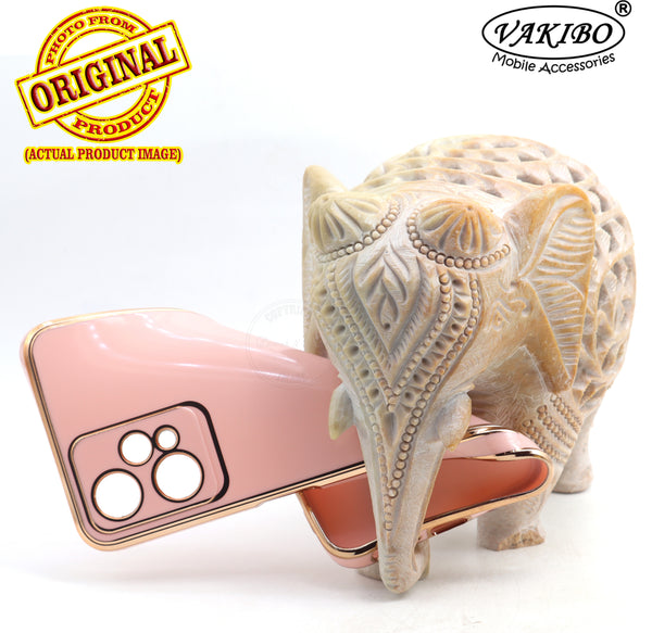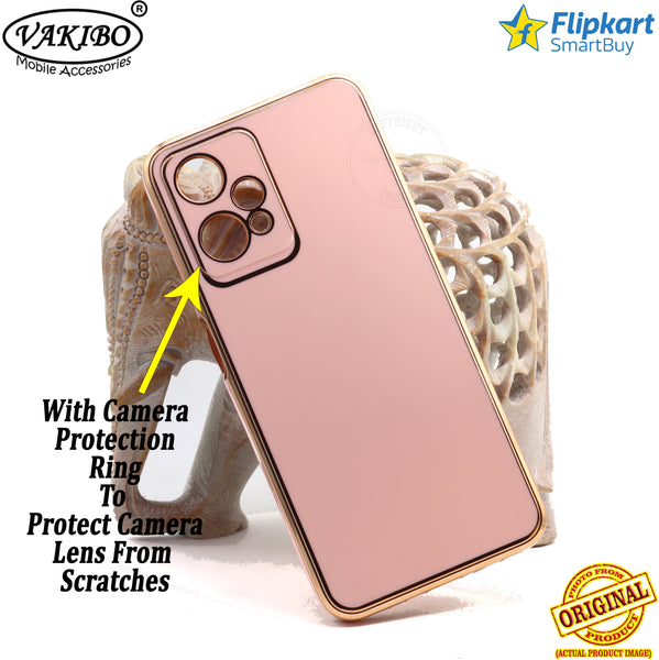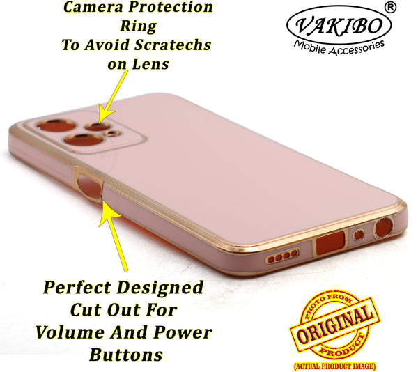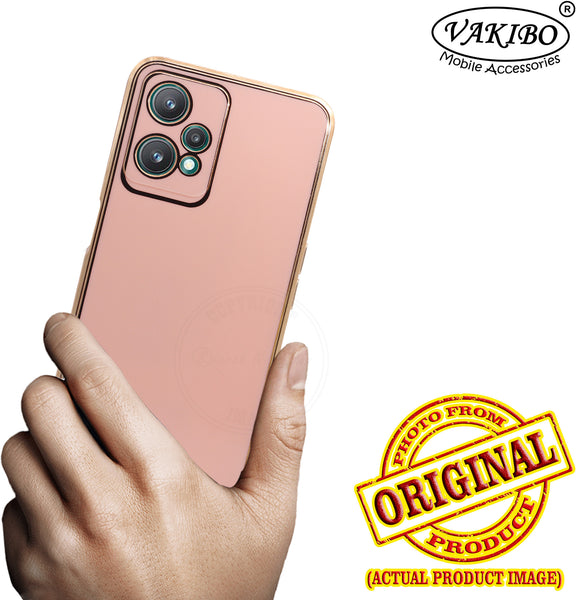 VAKIBO Golden Chrome Border Peach Coloured Soft TPU Back Cover Case With Camera Protection Suitable for Realme 9 Pro