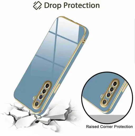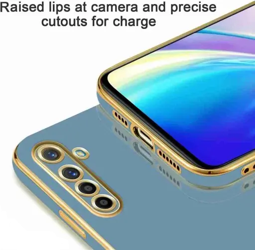 VAKIBO Golden Chrome Border Steel Blue Coloured Soft TPU Back Cover Case With Camera Protection Suitable for Realme X2