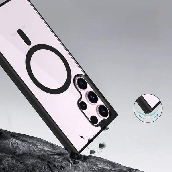 VAKIBO Megnatic Magsafe Black Coloured Soft with Hard back Back Cover Case With Camera Protection Ring Suitable for Samsung Galaxy S24 Ultra