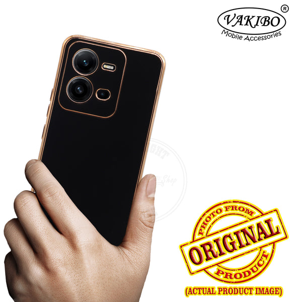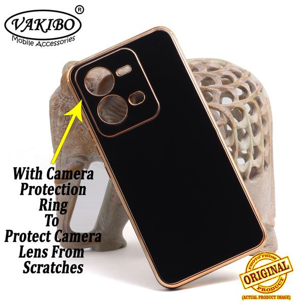 VAKIBO Golden Chrome Border Black Coloured Soft TPU Back Cover Case With Camera Protection Suitable for Vivo V25