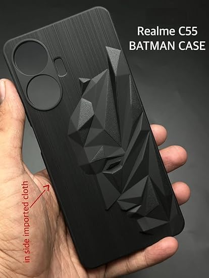VAKIBO Bat Man 3D Mask Design Black Coloured Soft TPU Back Cover Case With Camera Protection Ring Suitable for Realme Narzo N55