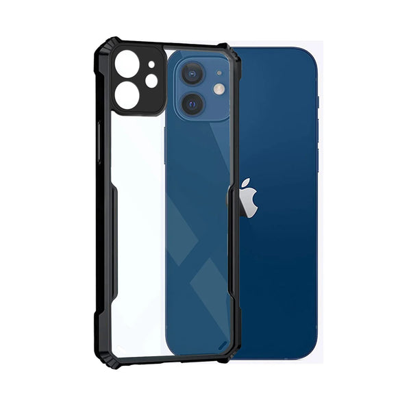 VAKIBO Best Selling Black and Transparent Coloured Made With Soft TPU and Acrylic Back Cover Case With 4 Corner and Camera Protection Suitable for iPhone 12