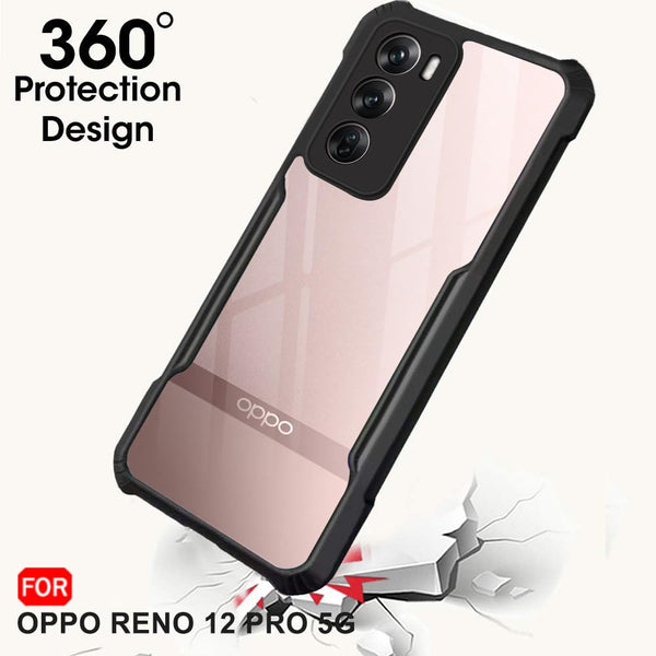 VAKIBO Best Selling Black and Transparent Coloured Made With Soft TPU and Acrylic Back Cover Case With 4 Corner and Camera Protection Suitable for Oppp Reno 12 Pro