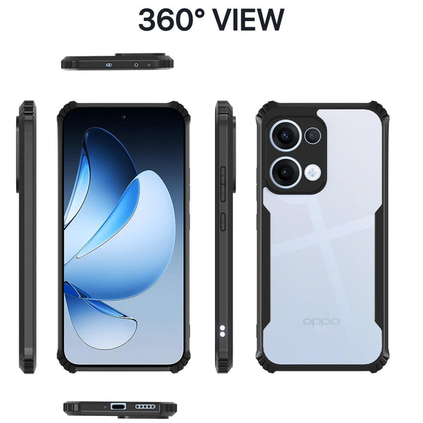 VAKIBO Best Selling Black and Transparent Coloured Made With Soft TPU and Acrylic Back Cover Case With 4 Corner and Camera Protection Suitable for Oppp Reno 13