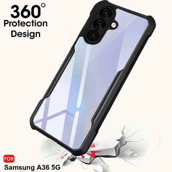 VAKIBO Best Selling Black and Transparent Coloured Made With Soft TPU and Acrylic Back Cover Case With 4 Corner and Camera Protection Suitable for Samsung Galaxy A36