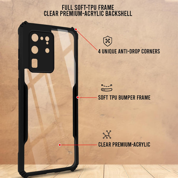 VAKIBO Best Selling Black and Transparent Coloured Made With Soft TPU and Acrylic Back Cover Case With 4 Corner and Camera Protection Suitable for Samsung Galaxy S20 Ultra