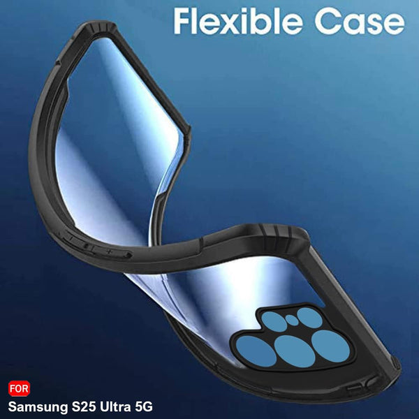 VAKIBO Best Selling Black and Transparent Coloured Made With Soft TPU and Acrylic Back Cover Case With 4 Corner and Camera Protection Suitable for Samsung Galaxy S25 Ultra