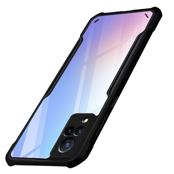 VAKIBO Best Selling Black and Transparent Coloured Made With Soft TPU and Acrylic Back Cover Case With 4 Corner and Camera Protection Suitable for Vivo V21