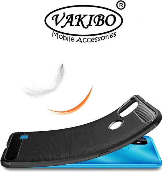 VAKIBO Carbon Fiber Brushed Black Coloured Soft TPU Back Cover Case With Camera Protection Ring Suitable for Infinix Smart HD 2021