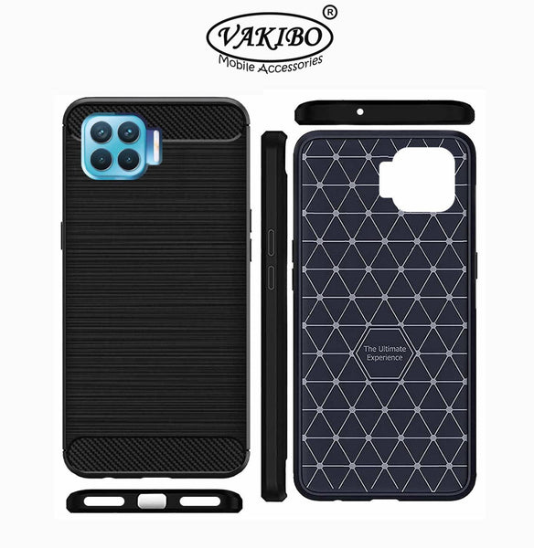 VAKIBO Carbon Fiber Brushed Black Coloured Soft TPU Back Cover Case With Camera Protection Ring Suitable for Oppo F17 Pro