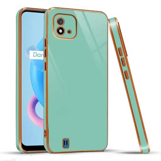 VAKIBO Golden Chrome Border Pista Coloured Soft TPU Back Cover Case With Camera Protection Suitable for Realme C20
