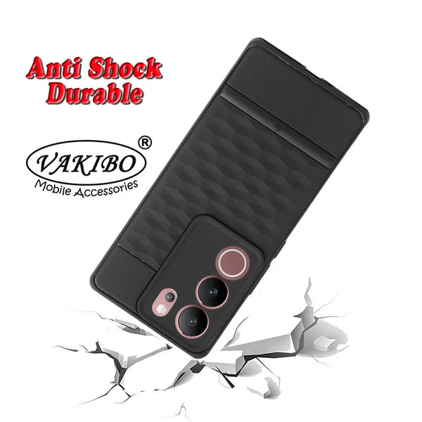VAKIBO Parallax Design Black Coloured Soft TPU Rubber Back Cover Case With Camera Protection Ring Suitable for Vivo V29 Pro